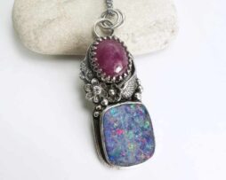 Engelsflügel Anhänger, Diamant, Opal, Sternrubin