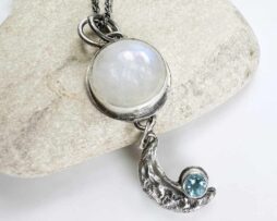 Mond Anhänger Silber, Mondstein, Swiss Blue Topas