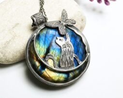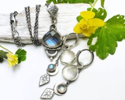 Mond Schmuckset, Labradorit Anhänger & Ohrringe