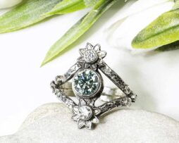 Moissanite Blumen Silber Ring, Handgefertigt