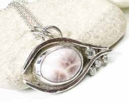 Böser Blick Anhänger, Pink Larimar, Moissanite