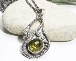 Schlangenanhänger, grüne Grossular Granat, Moissanit