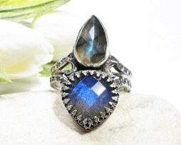 Statement Labradorit Mond Ring, 925 Silber, Einstellbar