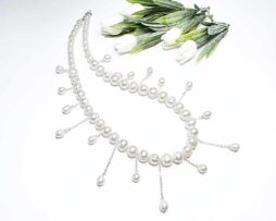 Perlenhalskette Silber, Hochzeit, Handarbeit