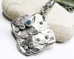 Schmetterling Blumenanhänger, Bergkristall, Saphir