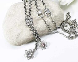 Flieder Blumen Anhänger Silber, pink Turmalin