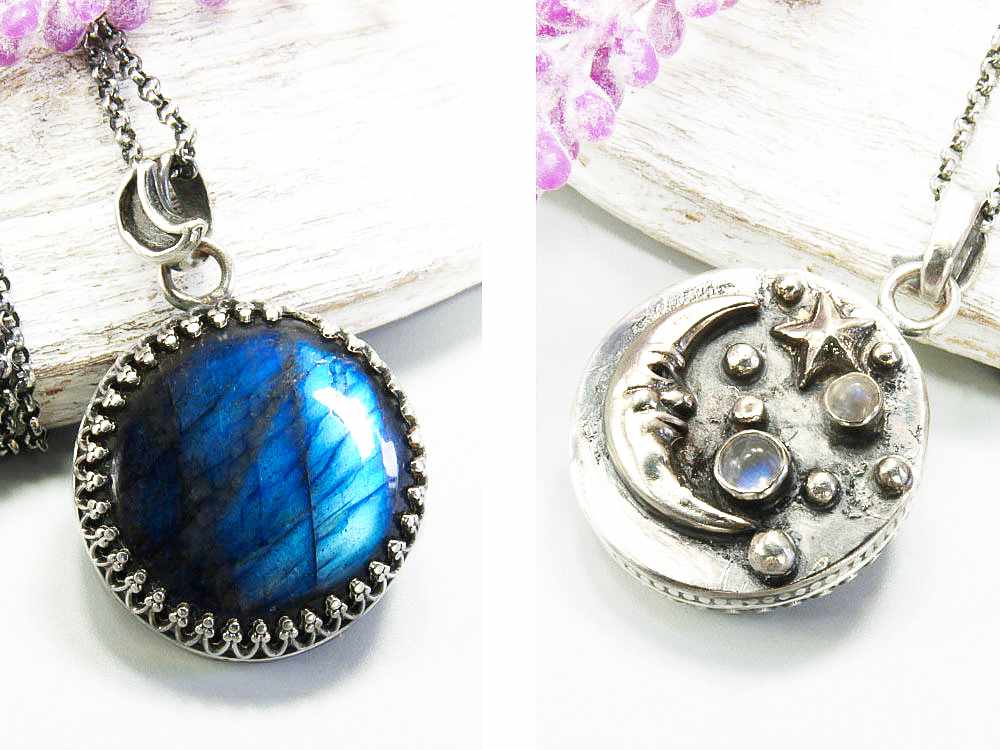Mond Anhänger Silber, Labradorit, Mondstein