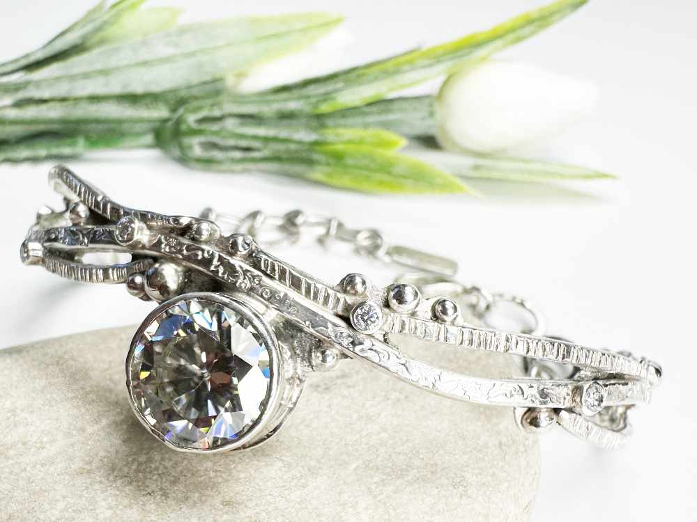 Moissanite Silber Armband, Handgefertigt