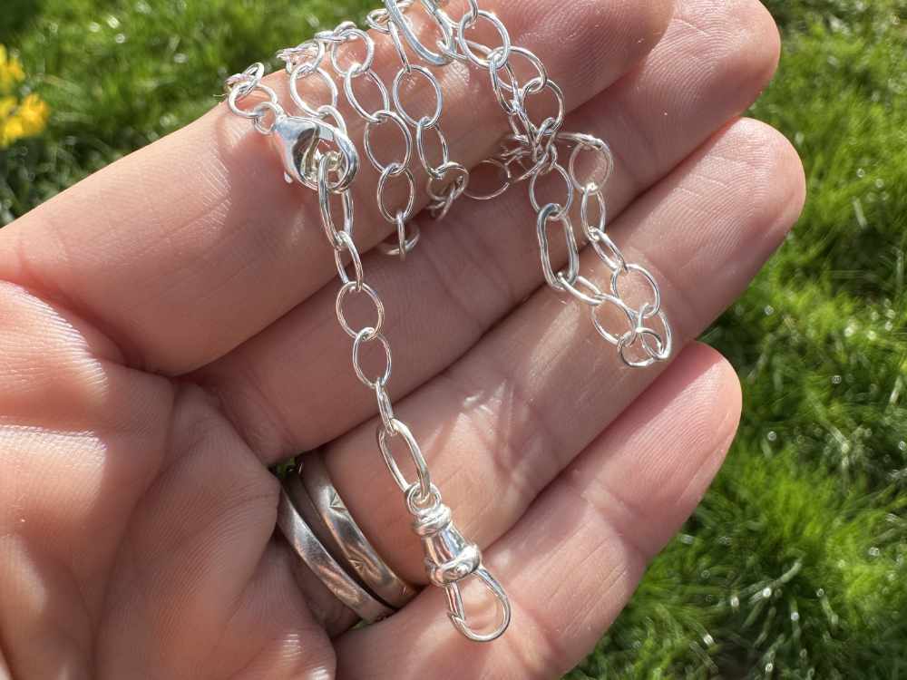 Diese edle Gliederhalskette aus massivem 925er Sterling-Silber verbindet zeitlose Schönheit mit praktischer Funktionalität. Die sorgfältig gestalteten ovalen Kettenglieder verleihen der Kette eine harmonische Mischung aus moderner und klassischer Ästhetik.