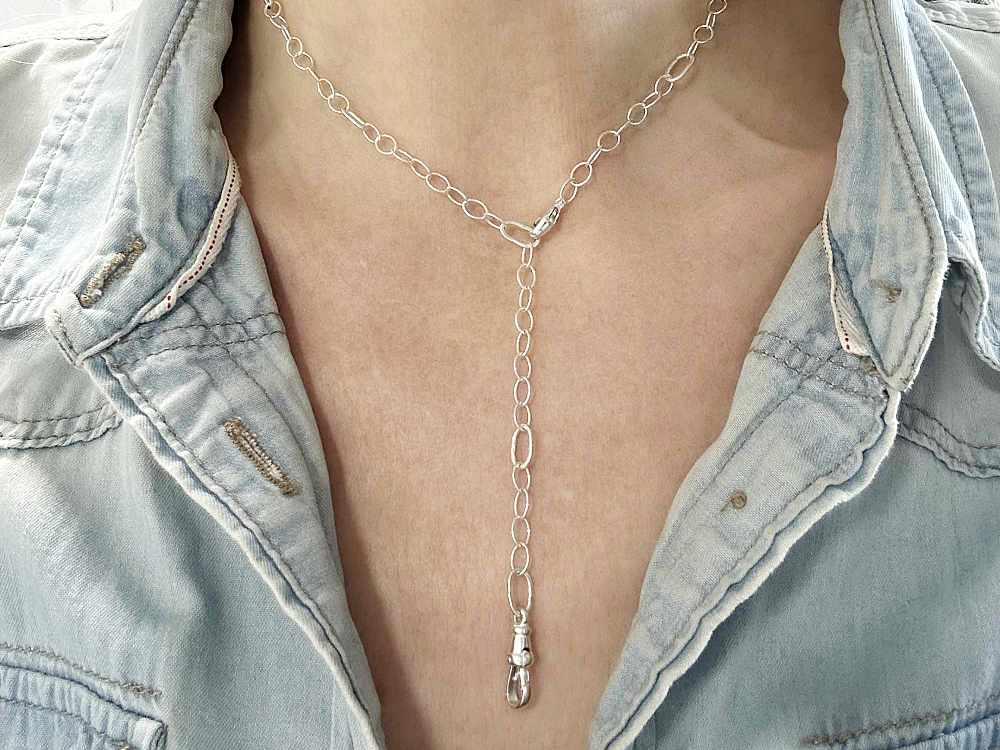 Dank ihres robusten Karabiner- und Snap-Hook-Verschlusses lässt sich die Kette mühelos sichern und bietet die Möglichkeit, Anhänger flexibel auszutauschen. Die Y-Form unterstreicht einen modernen und femininen Stil, wodurch das Dekolleté auf elegante Weise betont wird. Jedes Schmuckstück wird in Handarbeit gefertigt.